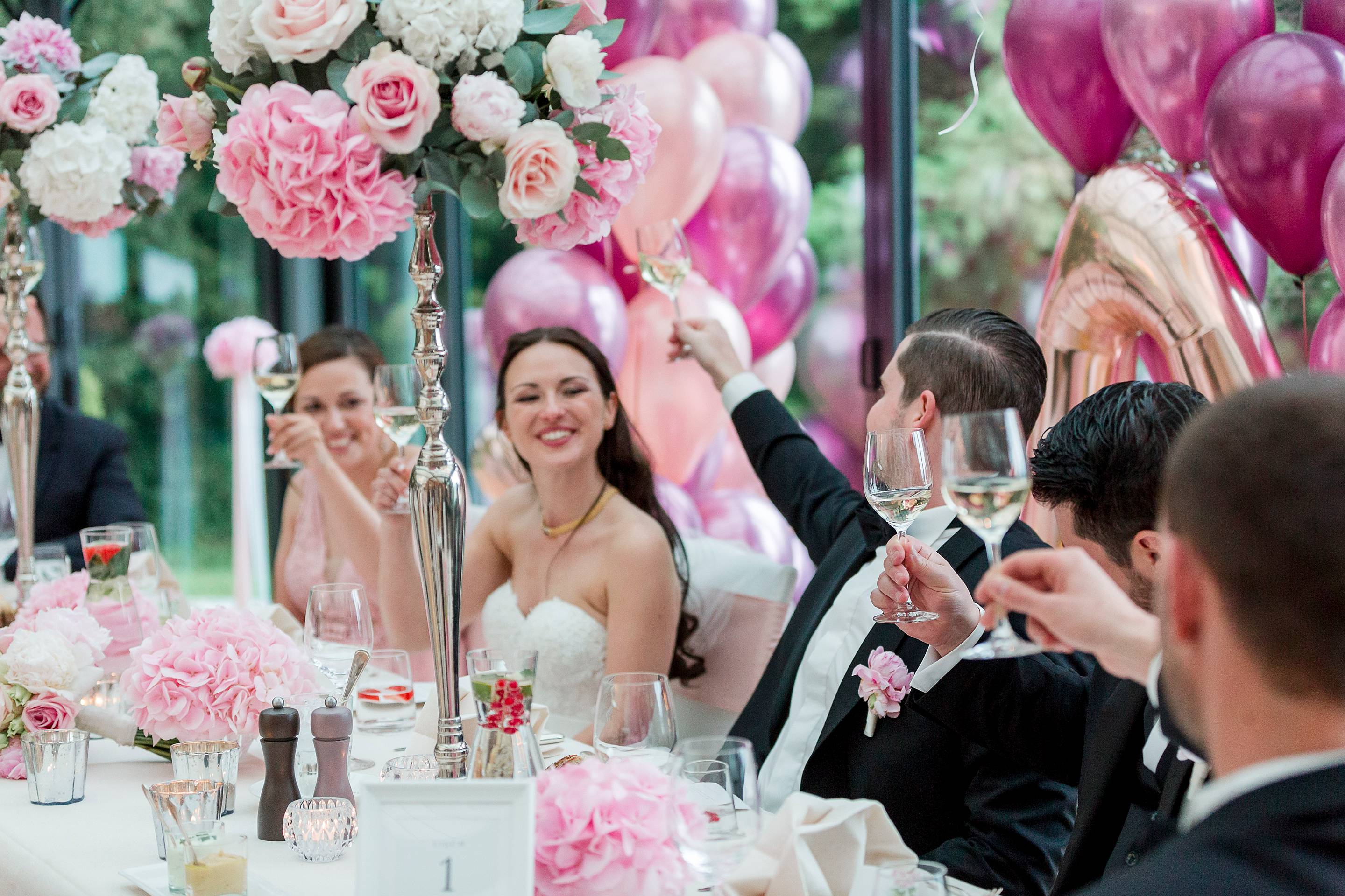 Nicht zuletzt natürlich auch wegen der wunderschönen Blumendeko von Inna Wiebe. Überbordende Blumenkugeln, ein wundervoller Brautstrauß und natürlich passende Sträußchen für die farblich perfekt eingekleideten Brautjungfern. Und wie wundervoll, dass viele Gäste der Einladung zu einer eleganten Kopfbedeckung gefolgt sind!